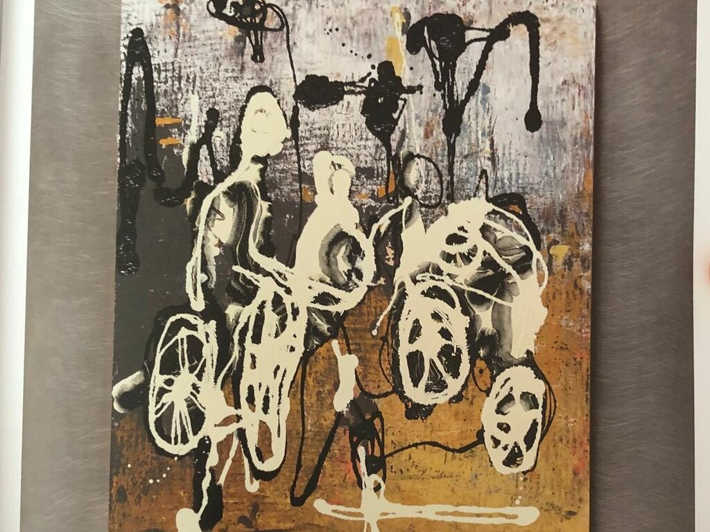 In pittura, Stefano predilige i pannelli MDF, su cui dipinge con acrilici e smalti. Un esempio è Incontri al parco (2016), presentato al premio “Art&Immagine Città di Trento” nell’ambito delle Feste Vigiliane, classificandosi al quinto posto. Su un fondo acrilico dai toni caldi e bruniti, due figure in bicicletta emergono in silhouette grazie allo smalto, i contorni neri e le campiture bianche: un gioco di luci e contrasti che conferisce all’opera dinamismo e brillantezza.